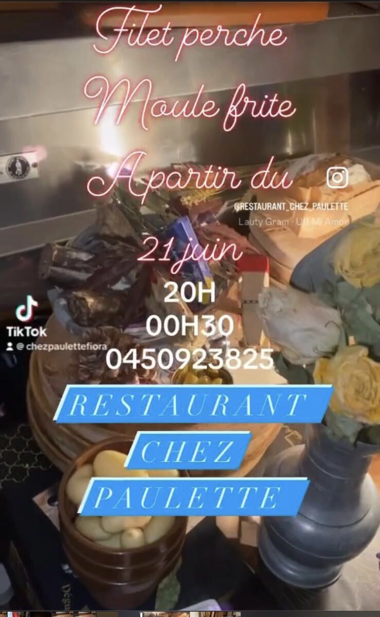 A partir du 21 juin de 20h à 00h30 filet de perche moules frites.